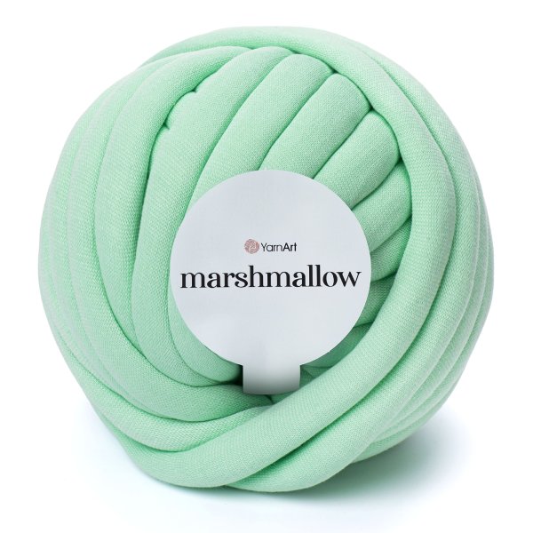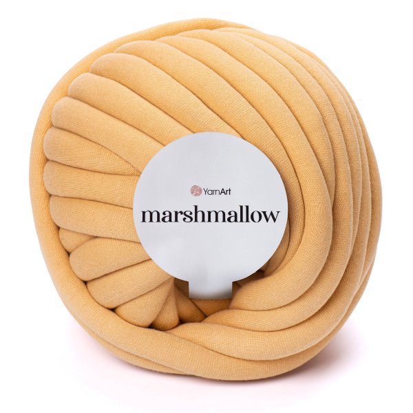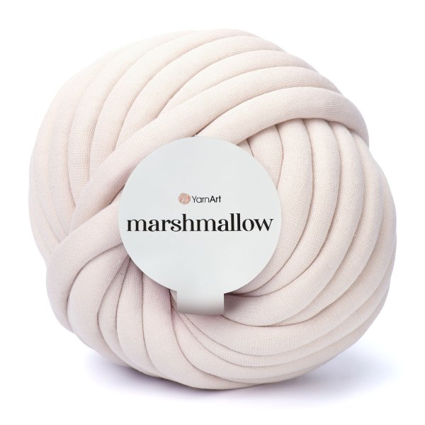 YarnArt Marshmallow yarn for knitting on hands or large needles. Composition: 37% Cotton - 63% Polyamide. Packed separately, sewing thread of the same color attached to the label. Long-awaited novelty, voluminous and after processing by knitting, crocheting or binding firm XXL yarn consisting of a tunnel knitted from fine and strong cotton filled with fiber. Marshmallow´s surface is smooth and very pleasant to the touch, so it works great - it doesn´t tear. This treatment also ensures very easy maintenance over similar merino fiber yarns. The knitting technique can be well understood on this very strong yarn and is therefore suitable for teaching. Marshmallow Yarn XXL is fantastic for knitting bedspreads and treads, nests and bags for babies, pads and bedding for pets, pillows and pillows, wreaths, seat cushions and other fancy and high-tech accessories.